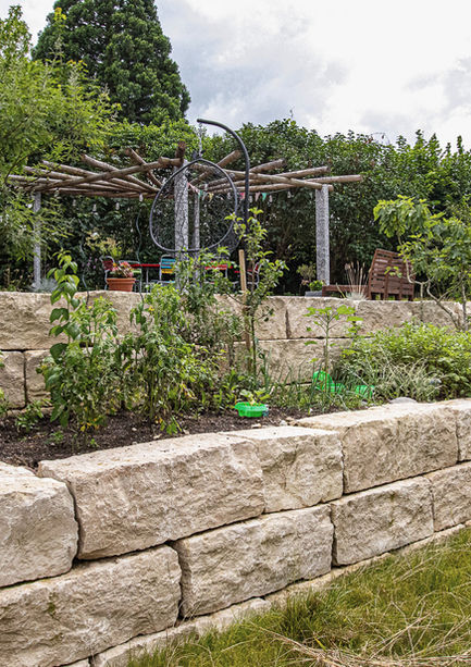 Trockenmauer mit integriertem Gemüsebeet.